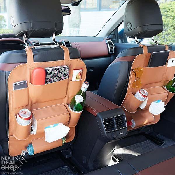 Limpe a bagunça em seu carro com este organizador de banco traseiro de carro bem projetado! Use-o para guardar garrafas, telefones, tecidos, revistas, guarda-chuvas e muito mais!