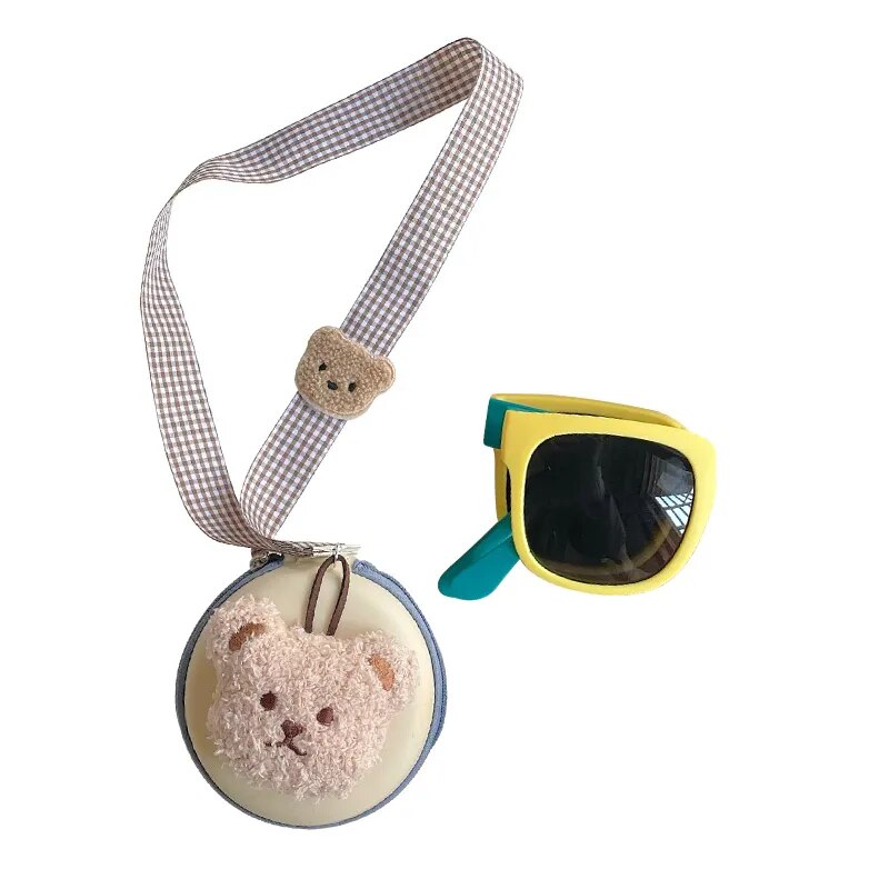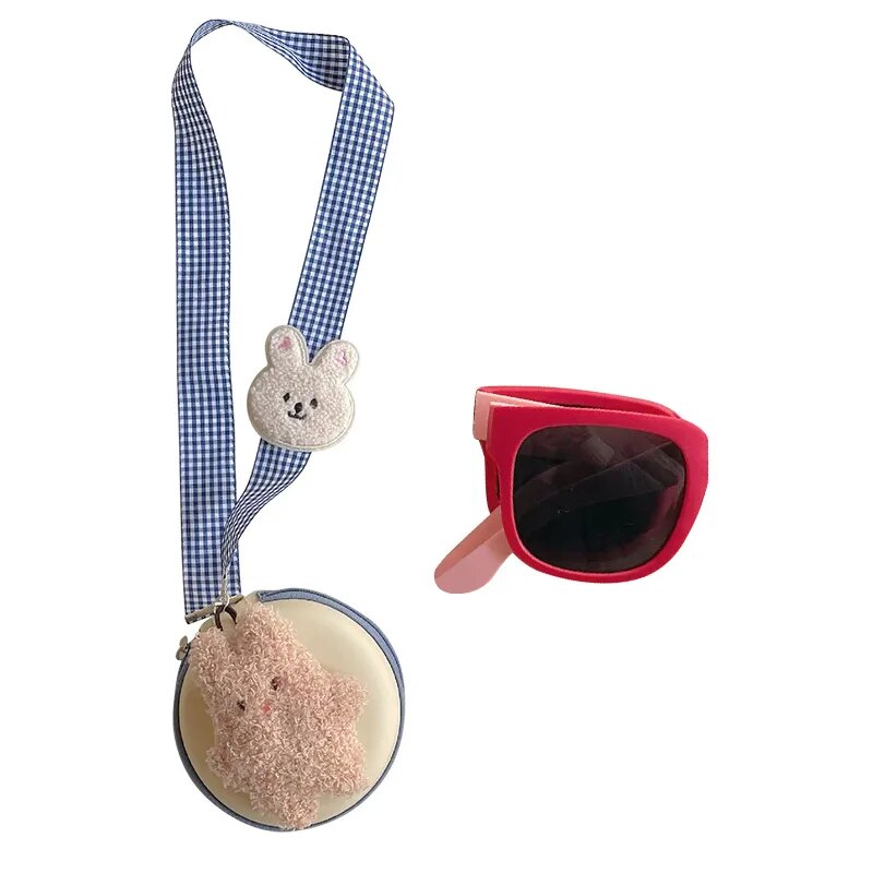 Óculos de Sol Infantil Dobrável e Flexível UV400 Com Caixinha de Pelúcia